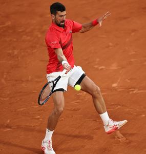 (250605) -- PARIS, 5 junio, 2025 (Xinhua) -- Imagen del 4 de junio de 2025 de Novak Djokovic devolviendo la pelota durante el partido de cuartos de final de individuales masculinos entre Alexander Zverev, de Alemania, y Novak Djokovic, de Serbia, en el torneo de tenis Abierto de Francia, en Roland Garros, en París, Francia. (Xinhua/Li Jing) (rtg) (ra) (ce)