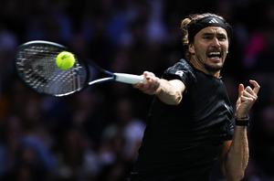 (251102) -- PARIS, 2 noviembre, 2025 (Xinhua) -- Imagen del 1 de noviembre de 2025 de Alexander Zverev, de Alemania, devolviendo la pelota durante el partido de semifinales ante Jannik Sinner, de Italia, en el torneo de tenis ATP Masters 1000 de París, en el Paris La Defense Arena, en París, Francia. (Xinhua/Gao Jing) (oa) (da)