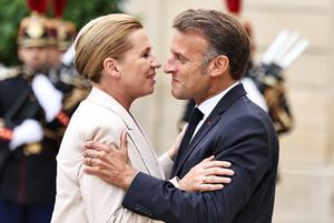 (250904) -- PARÍS, 4 septiembre, 2025 (Xinhua) -- El presidente francés, Emmanuel Macron (d), saluda a la primera ministra danesa, Mette Frederiksen, a su llegada para asistir a la reunión de la "Coalición de Voluntarios", en el Palacio del Elíseo, en París, Francia, el 4 de septiembre de 2025. Macron anunció el jueves que 26 países, en su mayoría europeos, prometieron de manera formal desplegar soldados como parte de un futuro cese al fuego ruso-ucraniano, aunque no directamente en la línea del frente. (Xinhua/Gao Jing) (rtg) (ra) (ce)