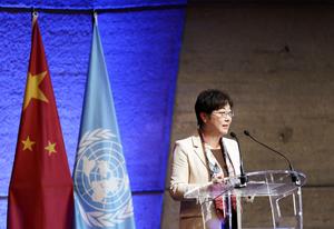 (260319) -- PARIS, 19 marzo, 2026 (Xinhua) -- Imagen del 18 de marzo de 2026 de Yang Xinyu, embajadora y delegada permanente de China ante la Organización de las Naciones Unidas para la Educación, la Ciencia y la Cultura (UNESCO, por sus siglas en inglés), hablando durante el evento de celebración, en París, Francia. Una celebración previa al primer Día Internacional del Taijiquan, que se celebrará el 21 de marzo, se llevó a cabo el miércoles en la sede de la UNESCO en París, bajo el lema "En forma para la vida, Ve por el taiji". (Xinhua/Wu Huiwo) (jg) (ah) (vf)