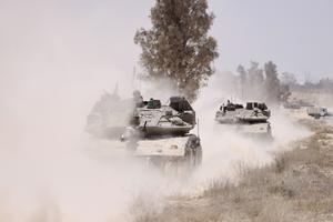 (250520) -- FRONTERA ISRAEL-GAZA, 20 mayo, 2025 (Xinhua) -- Tropas israelíes son vistas cerca de la frontera sur de Israel con Gaza, el 20 de mayo de 2025. El ejército israelí dijo el martes que ampliará su ofensiva terrestre en Gaza y tomará el control de territorio adicional. (Xinhua/Jamal Awad) (jg) (ra) (vf)