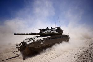 (250520) -- FRONTERA ISRAEL-GAZA, 20 mayo, 2025 (Xinhua) -- Un tanque israelí es visto cerca de la frontera sur de Israel con Gaza, el 20 de mayo de 2025. El ejército israelí dijo el martes que ampliará su ofensiva terrestre en Gaza y tomará el control de territorio adicional. (Xinhua/Jamal Awad) (jg) (ra) (vf)