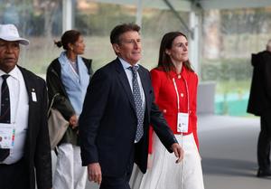 (250319) -- ANTIGUA OLIMPIA, 19 marzo, 2025 (Xinhua) -- Imagen del 18 de marzo de 2025 del candidato a la presidencia del Comité Olímpico Internacional (COI), Sebastian Coe (2-d), llegando previo a la ceremonia de inauguración de la 144ª sesión del Comité Olímpico Internacional (COI) en la Academia Olímpica Internacional, en la Antigua Olimpia, Grecia. (Xinhua/Cao Can) (jg) (da) (vf)