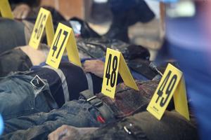 (250210) -- CIUDAD DE GUATEMALA, 10 febrero, 2025 (Xinhua) -- Cuerpos de las víctimas son numerados en el sitio de un accidente vial, en la Ciudad de Guatemala, capital de Guatemala, el 10 de febrero de 2025. Decenas de personas fallecidas dejó un trágico accidente vial ocurrido la madrugada del lunes en la capital de Guatemala, cuando un autobús extraurbano cayó a un barranco a orillas de la Calzada La Paz, mientras que varios heridos que fueron trasladados al Hospital General San Juan de Dios, reportan medios locales. (Xinhua/Str) (rtg) (ah) (vf)