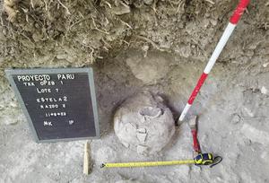 (250530) -- PETEN, 30 mayo, 2025 (Xinhua) -- Imagen cedida por el Ministerio de Cultura y Deportes de Guatemala del 11 de agosto de 2023 de una vasija descubierta en el yacimiento arqueológico de Uaxactún, en la Reserva de la Biosfera Maya, departamento de Petén, Guatemala. De acuerdo con el Ministerio de Cultura y Deportes de Guatemala, vestigios de una ciudad maya de hace más de 2.800 años fueron descubiertos dentro de una zona arqueológica en el norte de Guatemala. La ciudad, ubicada a 21 km al noreste de Uaxactún, fue bautizada como "Los Abuelos" por el hallazgo de dos esculturas antropomorfas que "representan a una pareja ancestral" y se trata de uno de los centros preclásicos más importantes del Petén. (Xinhua/Ministerio de Cultura y Deportes de Guatemala) (vf) (dp)