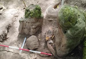 (250530) -- PETEN, 30 mayo, 2025 (Xinhua) -- Imagen cedida por el Ministerio de Cultura y Deportes de Guatemala del 17 de agosto de 2023 de piezas bautizadas como "Los Abuelos" descubiertas en el yacimiento arqueológico de Uaxactún, en la Reserva de la Biosfera Maya, departamento de Petén, Guatemala. De acuerdo con el Ministerio de Cultura y Deportes de Guatemala, vestigios de una ciudad maya de hace más de 2.800 años fueron descubiertos dentro de una zona arqueológica en el norte de Guatemala. La ciudad, ubicada a 21 km al noreste de Uaxactún, fue bautizada como "Los Abuelos" por el hallazgo de dos esculturas antropomorfas que "representan a una pareja ancestral" y se trata de uno de los centros preclásicos más importantes del Petén. (Xinhua/Ministerio de Cultura y Deportes de Guatemala) (vf) (dp)