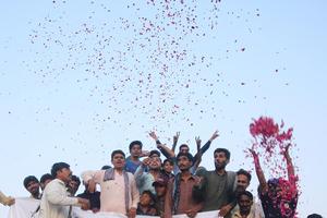 (250510) -- MULTAN, 10 mayo, 2025 (Xinhua) -- Pakistaníes festejan tras el alto el fuego entre Pakistán e India, en Multan, Pakistán, el 10 de mayo de 2025. Pakistán y la India acordaron un alto el fuego con efecto inmediato, declaró el sábado el viceprimer ministro y ministro de Relaciones Exteriores paquistaní, Ishaq Dar. (Xinhua/Mansoor) (jg) (da)