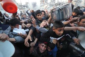 (250304) -- GAZA, 4 marzo, 2025 (Xinhua) -- Personas intentan recibir ayuda alimentaria durante el Ramadán, en la Ciudad de Gaza, el 4 de marzo de 2025. (Xinhua/Mahmoud Zaki) (ah) (vf)
