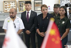 (250903) -- COMAYAGUA, 3 septiembre, 2025 (Xinhua) -- La presidenta hondureña, Xiomara Castro (3-i), en compañía del embajador de China en Honduras, Yu Bo (2-i), y el titular de la Secretaría de Educación de Honduras, Daniel Esponda (i), observa un laboratorio escolar durante la Ceremonia de Finalización de la Construcción China de la Escuela Agrícola, en la ciudad de Comayagua, Honduras, el 3 de septiembre de 2025. La presidenta de Honduras, Xiomara Castro, inauguró el miércoles en la ciudad de Comayagua la primera escuela agrícola construida con apoyo de China, un proyecto que forma parte del Sistema de Centros de Innovación Tecnológica y Agrícola del país centroamericano. (Xinhua/David de la Paz) (dp) (vf) (ce)