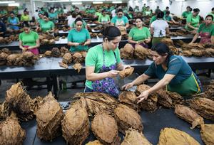 (251214) -- EL PARAISO, 14 diciembre, 2025 (Xinhua) -- Imagen del 13 de diciembre 2025 de trabajadoras acomodando hojas de tabaco en la fábrica de tabaco del Grupo Plasencia, en El Paraíso, Honduras. Para la industria del tabaco de Honduras, un sector que genera miles de empleos, impulsa economías locales y emerge como uno de los principales rubros exportadores del país centroamericano, la apertura del mercado chino comienza a perfilarse como una nueva ventana de oportunidades. (Xinhua/David de la Paz) (dp) (oa) (d)