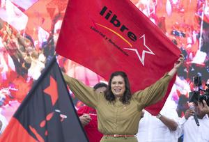 (250830) -- SAN PEDRO SULA, 30 agosto, 2025 (Xinhua) -- La candidata a la Presidencia de Honduras por el Partido Libertad y Refundación (Libre), Rixi Moncada, reacciona durante una movilización contra la dictadura económica, en la ciudad de San Pedro Sula, Honduras, el 30 de agosto de 2025. (Xinhua/David de la Paz) (dp) (ra)