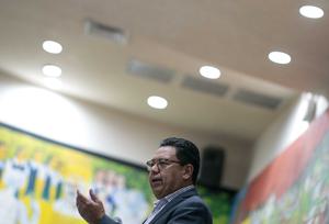 (250708) -- TEGUCIGALPA, 8 julio, 2025 (Xinhua) -- Imagen del 7 de julio de 2025 de Hermes Díaz, vicerrector de Internacionalización de la Universidad Pedagógica Nacional Francisco Morazán (UPNFM), hablando durante el conversatorio "La Modernización al estilo chino", en la UPNFM, en Tegucigalpa, Honduras. Representantes de China y Honduras celebraron el conversatorio "La Modernización al estilo chino", en el que se resaltó el avance tecnológico e industrial del país asiático en años recientes, así como la importancia de fortalecer el entendimiento mutuo entre los jóvenes centroamericanos. (Xinhua/David de la Paz) (dp) (vf)