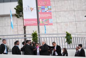 (250409) — TEGUCIGALPA, 9 abril, 2025 (Xinhua) — El canciller hondureño, Enrique Reina (6-i), habla con representantes de los medios de comunicación durante la IX Cumbre de Jefas, Jefes de Estado y de Gobierno de la Comunidad de Estados Latinoamericanos y Caribeños (CELAC), en Tegucigalpa, capital de Honduras, el 9 de abril de 2025. La IX Cumbre de Jefas, Jefes de Estado y de Gobierno de la CELAC inició el miércoles en la capital de Honduras, Tegucigalpa, con la presencia de más de una decena de mandatarios de la región. (Xinhua/David de la Paz) (dp) (jg) (da) (vf)