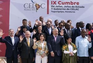 (250408) -- TEGUCIGALPA, 8 abril, 2025 (Xinhua) -- Cancilleres y vicecancilleres posan durante la toma de la fotografía oficial de la IX Cumbre de la Comunidad de Estados Latinoamericanos y Caribeños (CELAC), en Tegucigalpa, capital de Honduras, el 8 de abril de 2025. (Xinhua/David de la Paz) (dp) (jg) (ra) (vf)