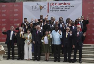 (250408) -- TEGUCIGALPA, 8 abril, 2025 (Xinhua) -- Cancilleres y vicecancilleres durante la toma de la fotografía oficial de la IX Cumbre de la Comunidad de Estados Latinoamericanos y Caribeños (CELAC), en Tegucigalpa, capital de Honduras, el 8 de abril de 2025. (Xinhua/Rafael Ochoa) (ro) (jg) (ra) (vf)