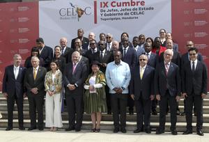 (250408) -- TEGUCIGALPA, 8 abril, 2025 (Xinhua) -- Cancilleres, vicecancilleres e invitados especiales posan durante la toma de la fotografía oficial de la IX Cumbre de la Comunidad de Estados Latinoamericanos y Caribeños (CELAC), en Tegucigalpa, capital de Honduras, el 8 de abril de 2025. (Xinhua/Rafael Ochoa) (ro) (jg) (ra) (vf)