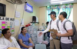 (250331) — TEGUCIGALPA, 31 marzo, 2025 (Xinhua) — Imagen del 24 de marzo de 2025 de empleados de la Fundación GX conversando con empleados del Hospital Escuela de Tegucigalpa, en Tegucigalpa, capital de Honduras. Ante el impacto de una grave epidemia de dengue, Honduras declaró en 2024 el estado de emergencia sanitaria a nivel nacional. En respuesta, la Fundación GX, una organización humanitaria china sin fines de lucro, lanzó en junio de ese año un proyecto de colaboración con el Ministerio de Salud de Honduras para la prevención y control de la enfermedad viral. De acuerdo con datos oficiales, la Fundación GX ha donado al Ministerio de Salud de Honduras 148.000 kits de pruebas rápidas, 100.000 mosquiteros, 12.000 lámparas antimosquitos, 200.000 rollos de papel atrapamoscas y una gran cantidad de material educativo, que ha sido distribuido en los centros médicos de los 18 departamentos del país. (Xinhua/Li Mengxin) (rtg) (ah) (vf)