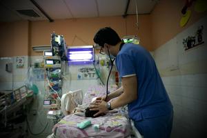 (250331) -- TEGUCIGALPA, 31 marzo, 2025 (Xinhua) -- Imagen del 24 de marzo de 2025 de un médico revisando a una paciente frente a una lámpara antimosquitos donada por la Fundación GX, en el Hospital Escuela de Tegucigalpa, en Tegucigalpa, capital de Honduras. Ante el impacto de una grave epidemia de dengue, Honduras declaró en 2024 el estado de emergencia sanitaria a nivel nacional. En respuesta, la Fundación GX, una organización humanitaria china sin fines de lucro, lanzó en junio de ese año un proyecto de colaboración con el Ministerio de Salud de Honduras para la prevención y control de la enfermedad viral. De acuerdo con datos oficiales, la Fundación GX ha donado al Ministerio de Salud de Honduras 148.000 kits de pruebas rápidas, 100.000 mosquiteros, 12.000 lámparas antimosquitos, 200.000 rollos de papel atrapamoscas y una gran cantidad de material educativo, que ha sido distribuido en los centros médicos de los 18 departamentos del país. (Xinhua/David de la Paz) (dp) (rtg) (ah) (vf)