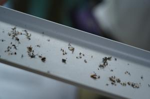 (250331) -- TEGUCIGALPA, 31 marzo, 2025 (Xinhua) -- Imagen del 24 de marzo de 2025 de mosquitos muertos en un barandal, en el Hospital Escuela de Tegucigalpa, en Tegucigalpa, capital de Honduras. Ante el impacto de una grave epidemia de dengue, Honduras declaró en 2024 el estado de emergencia sanitaria a nivel nacional. En respuesta, la Fundación GX, una organización humanitaria china sin fines de lucro, lanzó en junio de ese año un proyecto de colaboración con el Ministerio de Salud de Honduras para la prevención y control de la enfermedad viral. De acuerdo con datos oficiales, la Fundación GX ha donado al Ministerio de Salud de Honduras 148.000 kits de pruebas rápidas, 100.000 mosquiteros, 12.000 lámparas antimosquitos, 200.000 rollos de papel atrapamoscas y una gran cantidad de material educativo, que ha sido distribuido en los centros médicos de los 18 departamentos del país. (Xinhua/Li Mengxin) (rtg) (ah) (vf)