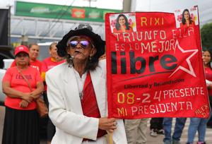 (251123) -- TEGUCIGALPA, 23 noviembre, 2025 (Xinhua) -- Un simpatizante de la candidata a la Presidencia de Honduras por el Partido Libertad y Refundación (Libre), Rixi Moncada, asiste al cierre de campaña de Moncada, en Tegucigalpa, capital de Honduras, el 23 de noviembre de 2025. Más de 6,5 millones de hondureños están convocados a las urnas el 30 de noviembre para elegir al próximo presidente, tres designados presidenciales, 298 alcaldes, 128 diputados al Congreso Nacional y 20 representantes al Parlamento Centroamericano. (Xinhua/Rafael Ochoa) (ro) (oa) (da)