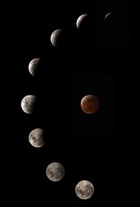 (250314) -- TEGUCIGALPA, 14 marzo, 2025 (Xinhua) -- Imagen combinada iniciada el 13 de marzo de 2025 y finalizada el 14 de marzo de 2025 de las fases de la luna durante un eclipse lunar total, en la ciudad de Tegucigalpa, Honduras. (Xinhua/David de la Paz) (dp) (rtg) (ra) (vf)