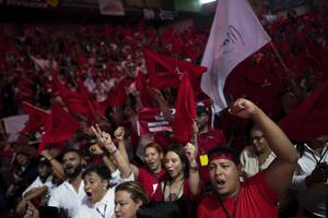 (250531) -- TEGUCIGALPA, 31 mayo, 2025 (Xinhua) -- Simpatizantes de la candidata a la Presidencia de Honduras por el Partido Libertad y Refundación (Libre), Rixi Moncada, festejan su candidatura durante la Asamblea Nacional de su partido, en la ciudad de Tegucigalpa, capital de Honduras, el 31 de mayo de 2025. Moncada lideró las pasadas elecciones primarias con más de 674.000 votos, superando a cualquier otro candidato en la historia de las contiendas internas del país centroamericano. (Xinhua/David de la Paz) (dp) (jg) (da)