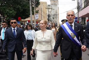 (260127) -- TEGUCIGALPA, 27 enero, 2026 (Xinhua) -- El presidente hondureño, Nasry Asfura (d), camina acompañado de su esposa Lissette del Cid (c), al término de su ceremonia de toma de posesión, en Tegucigalpa, capital de Honduras, el 27 de enero de 2026. Nasry Asfura juramentó el martes como presidente constitucional de Honduras para el período 2026-2030 en una ceremonia celebrada en el Congreso Nacional, luego de resultar vencedor en los comicios generales del país centroamericano celebrados el pasado 30 de noviembre. (Xinhua/Rafael Ochoa) (ro) (ah) (ra) (vf)