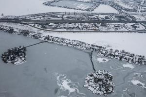 (260109) -- BUDAPEST, 9 enero, 2026 (Xinhua) -- Vista aérea tomada con un dron el 9 de enero de 2026 del lago Kavicsos congelado, en Budapest, Hungría. (Xinhua/David Balogh) (jg) (ra) (vf)