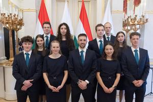 (260125) -- BUDAPEST, 25 enero, 2026 (Xinhua) -- Imagen del 24 de enero de 2026 de miembros del Equipo Olímpico de Invierno de Hungría posando durante una ceremonia de juramentación para los próximos Juegos Olímpicos de Invierno Milán-Cortina 2026, en Budapest, Hungría. (Xinhua/Attila Volgyi) (rtg) (da)