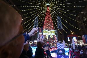 (251116) -- BUDAPEST, 16 noviembre de 2025 (Xinhua) -- Imagen del 15 de noviembre de 2025 de un visitante tomando fotografías en un mercado navideño, en el centro de Budapest, Hungría. El mercado abrió aquí el viernes y permanecerá abierto hasta el 1 de enero de 2026. (Xinhua/Attila Volgyi) (oa) (ah)