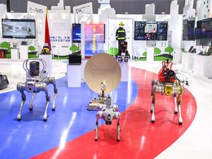 (250918) -- BEIJING, Sept. 18, 2025 (Xinhua) -- AI-powered firefighting devices are seen at Nanning International Convention and Exhibition Center in Nanning, capital of south China's Guangxi Zhuang Autonomous Region, Sept. 17, 2025.