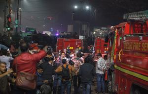 (251110) -- NUEVA DELHI, 10 noviembre, 2025 (Xinhua) -- Policías, bomberos y periodistas indios se reúnen en el sitio de la explosión de un automóvil cerca del Fuerte Rojo, en Nueva Delhi, India, el 10 de noviembre de 2025. El número de muertos por una explosión ocurrida en Delhi la noche del lunes se elevó a ocho, en tanto que varias personas gravemente heridas fueron admitidas en un hospital local, reportó el canal de televisión "Aaj Tak". (Xinhua/Str) (rtg) (ah) (ce)