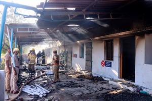 (260420) -- TAMIL NADU, 20 abril, 2026 (Xinhua) -- Imagen del 19 de abril de 2026 de rescatistas trabajando en el sitio de una explosión de una fábrica de fuegos artificiales, en el distrito de Virudhunagar de Tamil Nadu, India. Al menos 21 personas murieron y otras seis resultaron heridas el domingo en una explosión ocurrida en una fábrica de fuegos artificiales, en el estado de Tamil Nadu, en el sur de India, informó la emisora estatal All India Radio (AIR). (Xinhua/IANS) (ah) (vf)
