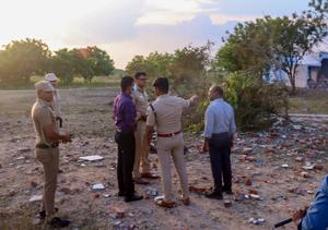 (260420) -- TAMIL NADU, 20 abril, 2026 (Xinhua) -- Imagen del 19 de abril de 2026 de policías inspeccionando el sitio de una explosión de una fábrica de fuegos artificiales, en el distrito de Virudhunagar de Tamil Nadu, India. Al menos 21 personas murieron y otras seis resultaron heridas el domingo en una explosión ocurrida en una fábrica de fuegos artificiales, en el estado de Tamil Nadu, en el sur de India, informó la emisora estatal All India Radio (AIR). (Xinhua/IANS) (ah) (vf)
