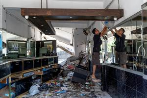 (250911) -- DENPASAR, 11 septiembre, 2025 (Xinhua) -- Un hombre revisa las zonas dañadas en su tienda luego de las fuertes lluvias, en Denpasar, Bali, Indonesia, el 11 de septiembre de 2025. Las inundaciones provocadas por días de fuertes lluvias han causado la muerte de al menos 19 personas y la desaparición de otras 10 en la isla indonesia de Bali y en la provincia de Nusa Tenggara Oriental. (Xinhua/Dicky Bisinglasi) (da) (ra) (vf)
