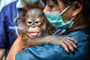 (250221) -- BANDUNG, 21 febrero, 2025 (Xinhua) -- Una veterinaria sostiene a un bebé orangután macho de dos meses y siete días de edad en el Zoológico de Bandung, en Bandung, Java Occidental, Indonesia, el 21 de febrero de 2025. El bebé orangután nació aquí el 13 de diciembre del año pasado. (Xinhua/Septianjar Muharam) (jg) (da) (ce)