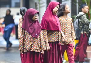 (250519) -- YAKARTA, 19 mayo, 2025 (Xinhua) -- Imagen del 16 de mayo de 2025 de niñas portando batik de Indonesia mientras caminan en un campus durante un evento de "Viernes de Batik, en Bandung, en Java Occidental, Indonesia. El batik de Indonesia, la tela tradicional nacional, fue inscrita como Obra Maestra de Patrimonio Oral e Inmaterial de la Humanidad, por la Organización de las Naciones Unidas para la Educación, la Ciencia y la Cultura, el 2 de octubre de 2009. (Xinhua/Septianjar Muharam) (rtg) (ah) (vf)