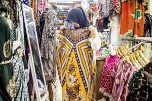 (250519) -- YAKARTA, 19 mayo, 2025 (Xinhua) -- Imagen del 18 de mayo de 2025 de un cliente seleccionando telas de batik de Indonesia en el Mercado Tradicional de Beringharjo, en Yogyakarta, Indonesia. El batik de Indonesia, la tela tradicional nacional, fue inscrita como Obra Maestra de Patrimonio Oral e Inmaterial de la Humanidad, por la Organización de las Naciones Unidas para la Educación, la Ciencia y la Cultura, el 2 de octubre de 2009. (Xinhua/Agung Supriyanto) (rtg) (ah) (vf)