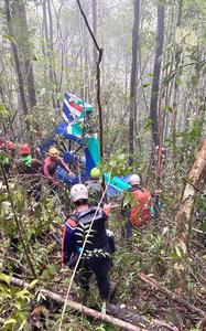 (250904) -- KALIMANTAN MERIDIONAL, 4 septiembre, 2025 (Xinhua) -- Imagen del 3 de septiembre de 2025 proveída por la Agencia Nacional de Búsqueda y Rescate (Basarnas) de Indonesia de rescatistas cerca de los restos de un helicóptero en una jungla, en la provincia de Kalimantan Meridional, Indonesia. Los restos de un helicóptero que transportaba a dos tripulantes y a seis pasajeros fueron hallados en una selva en la provincia de Kalimantan Meridional de Indonesia, dijo el miércoles por la noche un funcionario, citado por la agencia estatal de noticias Antara. El helicóptero, operado por Eastindo Air, perdió contacto con el control de tráfico aéreo el lunes, justo ocho minutos después de despegar de un aeropuerto en el distrito de Kotabaru, en Kalimantan Meridional. (Xinhua/Basarnas) (da) (ra) (vf) ***SOLO USO EDITORIAL***