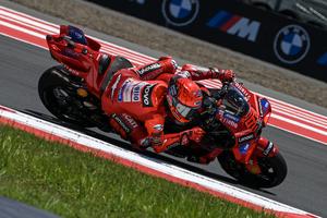 (251003) -- LOMBOK, 3 octubre, 2025 (Xinhua) -- Marc Márquez, del equipo Ducati Lenovo, compite durante la práctica libre número 1 de MotoGP, en el Gran Premio Pertamina de Indonesia 2025, en la isla de Lombok, Indonesia, el 3 de octubre de 2025. (Xinhua/Veri Sanovri) (oa) (ra) (ce)