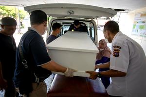 (250507) -- PADANG, 7 mayo, 2025 (Xinhua) -- Familiares y funcionarios trasladan el féretro de una víctima a una ambulancia en el Hospital Bhayangkara, en Padang, en la provincia de Sumatra Occidental, Indonesia, el 7 de mayo de 2025. Al menos 12 personas murieron y más de cinco resultaron heridas el martes por la mañana en un accidente de autobús ocurrido en la ciudad de Padang Panjang, en la provincia indonesia de Sumatra Occidental, confirmó un funcionario. (Xinhua/Andri Mardiansyah) (ah) (ra) (vf)