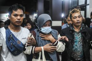 (251006) -- SIDOARJO, 6 octubre, 2025 (Xinhua) -- Imagen del 5 de octubre de 2025 de familiares de las víctimas de un edificio escolar colapsado vistos en el Hospital Bhayangkara, en Surabaya, en Java Oriental, Indonesia. La cifra de muertos por el derrumbe de un edificio de la escuela internado islámica Al Khoziny en la regencia de Sidoarjo en Java Oriental aumentó a 60 después de que los equipos de búsqueda y rescate recuperaron otros 11 cuerpos el lunes, informó la Agencia Nacional de Gestión de Desastres de Indonesia. (Xinhua/Sahlan Kurniawan) (rtg) (ah) (vf)
