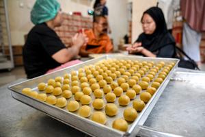 (250316) -- TANGERANG, 16 marzo, 2025 (Xinhua) -- Empleados elaboran galletas tradicionales pedidas por clientes para el Eid al-Fitr, en Kampung Nastar en Tangerang, en la provincia de Banten, Indonesia, el 16 de marzo de 2025. (Xinhua/Agung Kuncahya B.) (rtg) (ah)