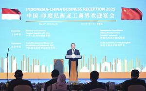 (250524) -- YAKARTA, 24 mayo, 2025 (Xinhua) -- El primer ministro chino, Li Qiang, pronuncia un discurso en la Recepción de Negocios 2025 Indonesia-China, en Yakarta, Indonesia, el 24 de mayo de 2025. El presidente indonesio, Prabowo Subianto, también asistió al evento. (Xinhua/Li Xiang) (jg) (da)