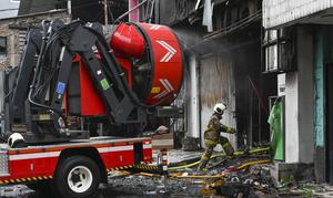 (251209) -- YAKARTA, 9 diciembre, 2025 (Xinhua) -- Un bombero trabaja en el sitio de un incendio que afectó al edificio de oficinas Terra Drone, en Yakarta, Indonesia, el 9 de diciembre de 2025. Un total de 22 personas murieron tras desatarse un incendio el martes en el edificio de oficinas Terra Drone, en Yakarta Central, informaron las autoridades locales. (Xinhua/Zulkarnain) (jg) (ra) (vf)