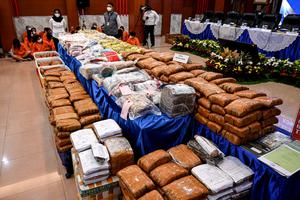 (250623) -- YAKARTA, 23 junio, 2025 (Xinhua) -- Varias drogas son vistas previo a una conferencia de prensa sobre la revelación de una red de distribución de drogas en la oficina de la Dirección General de Aduanas e Impuestos, en Yakarta, Indonesia, el 23 de junio de 2025. La Agencia Nacional de Estupefacientes de Indonesia (BNN por sus siglas en indonesio), junto con las aduanas indonesias, han logrado detener a 285 sospechosos de tráfico de drogas con pruebas de diversos tipos de estupefacientes entre abril y junio de 2025. (Xinhua/Agung Kuncahya B.) (oa) (rtg) (vf)