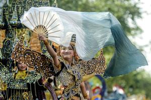 (250818) -- YOGYAKARTA, 18 agosto, 2025 (Xinhua) -- Imagen del 17 de agosto de 2025 de artistas participando en un desfile de carnaval como parte de las celebraciones del 80° Día de la Independencia de Indonesia en la calle Malioboro, en Yogyakarta, Indonesia. (Xinhua/Agung Supriyanto) (oa) (ah) (ce)