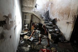 (250723) — BAGDAD, 23 julio, 2025 (Xinhua) — Un hombre intenta recolectar objetos en el interior de una casa tras un incendio, en Bagdad, Irak, el 23 de julio de 2025. Un incendio se produjo el miércoles en la casa de un civil en el este de Bagdad, matando al menos a cuatro personas e hiriendo gravemente a otras dos, dijo a Xinhua una fuente del Ministerio del Interior iraquí. (Xinhua/Khalil Dawood) (jg) (da) (ce)