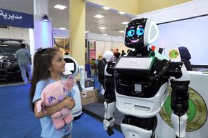 (250925) -- BAGDAD, 25 septiembre, 2025 (Xinhua) -- Una niña observa un robot en la Exposición Internacional de Tecnologías de la Información y las Telecomunicaciones de Irak, en Bagdad, Irak, el 25 de septiembre de 2025. La exposición comenzó el jueves en Bagdad y durará cuatro días. (Xinhua/Khalil Dawood) (jg) (ah) (ce)