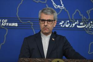 (250505) -- TEHERAN, 5 mayo, 2025 (Xinhua) -- El vocero del Ministerio de Relaciones Exteriores iraní, Esmaeil Baghaei, asiste a una conferencia de prensa, en Teherán, Irán, el 5 de mayo de 2025. Baghaei dijo el lunes que Irán no buscará militarizar su programa nuclear. (Xinhua/Shadati) (vf) (ce)